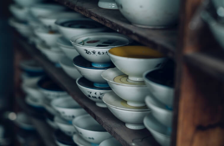高温で酸素を抜きながらしっかりと焼き切ることにより、深川製磁の代名詞ともなっている透明感のある白、鮮やかな青の色味が引き出され、軽量かつ強度の高い品に仕上がります。