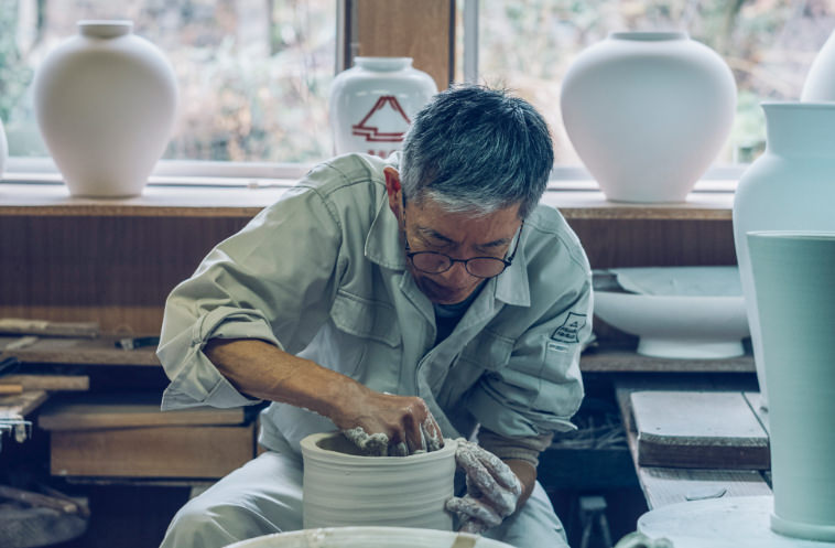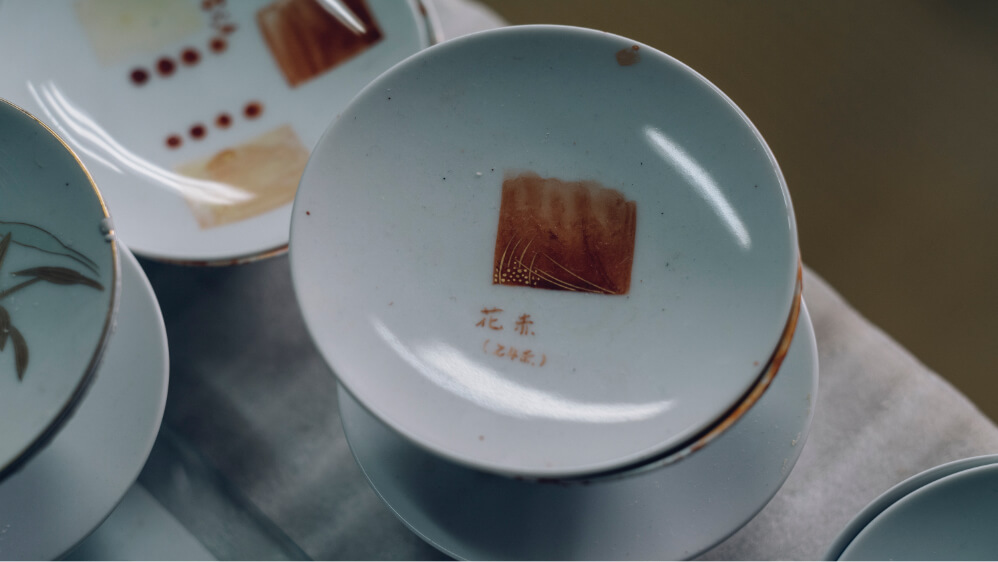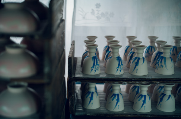 数ある工程のうち、深川製磁の特徴として挙げられるのは、生地づくり、自家調合の絵の具と絵付け、そして通常より高い焼成温度の3点が挙げられます。「フカガワブルー」と呼ばれる鮮やかな青、そして光にかざすと透けるほどの透白磁——ほかに類を見ない美しさは、たしかな技術によって支えられたものです。