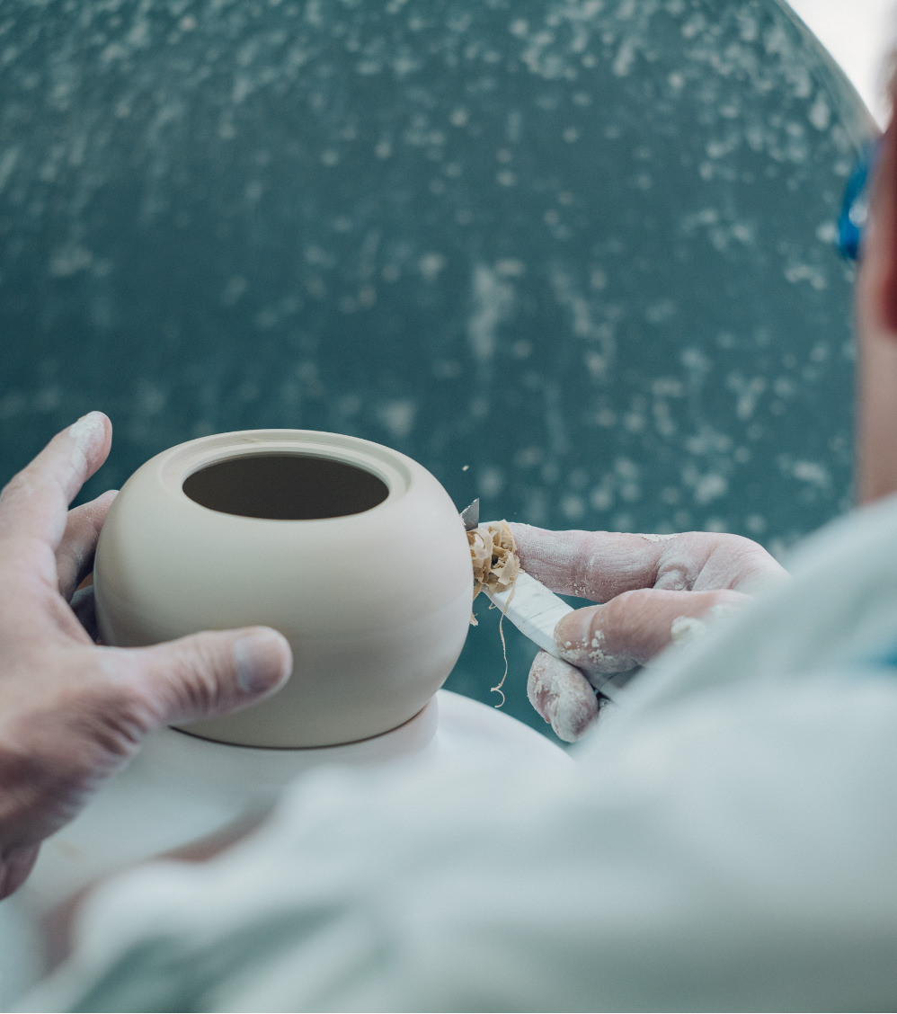出来上がった粘土は、「ろくろ」または石膏の「型」を使って成型。深川製磁では、その石膏型、さらには石膏型をつくるためのもととなる原型から、職人の手によってつくられています。
