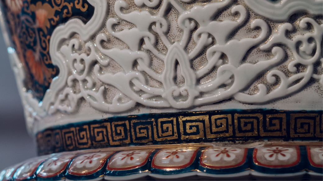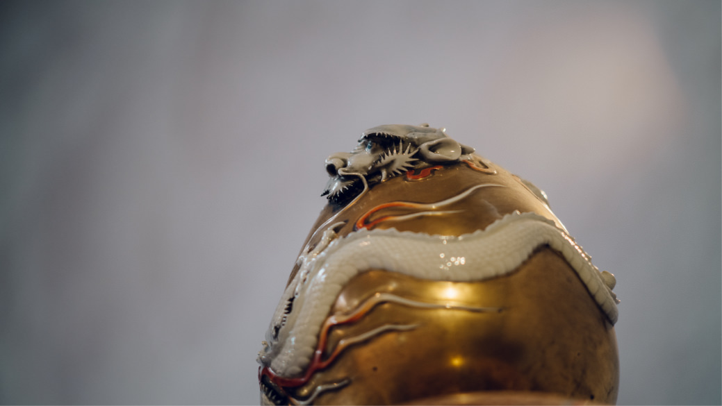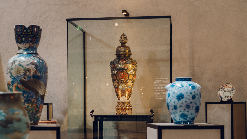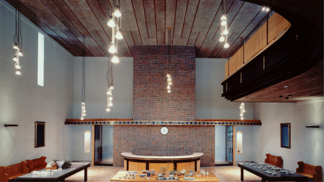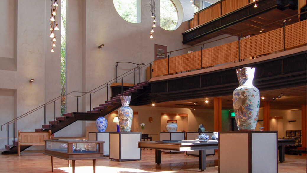 深川製磁の初代・深川忠次が手がけた作品から、そのスタイルを継承している現代の作品まで、深川様式のすべてが一堂に会したランドマーク。緑に囲まれた、敷地内の丘の上に佇むギャラリーです。ほぼ100年にわたり、門外不出として本店参考館に所蔵していた1900年パリ万国博覧会金牌受賞の大壺も、「チャイナ・オン・ザ・パーク」20周年を機に一般公開いたしました。忠次作品を模倣するのではなく、現代の食器として磨きをかけ続けていることへの誇りを込め、創業当初の作品から最新作までを同じ空間に展示しております。深川様式の魅力を余すところなくご体感いただける空間です。